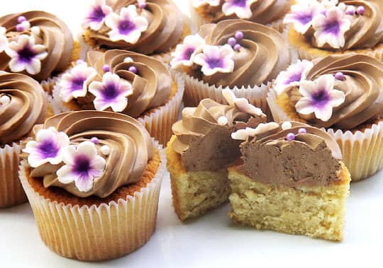 Spread on cooled cupcakes and decorate with your choice of topping such as edible flowers, fresh fruit, grated chocolate or candy.